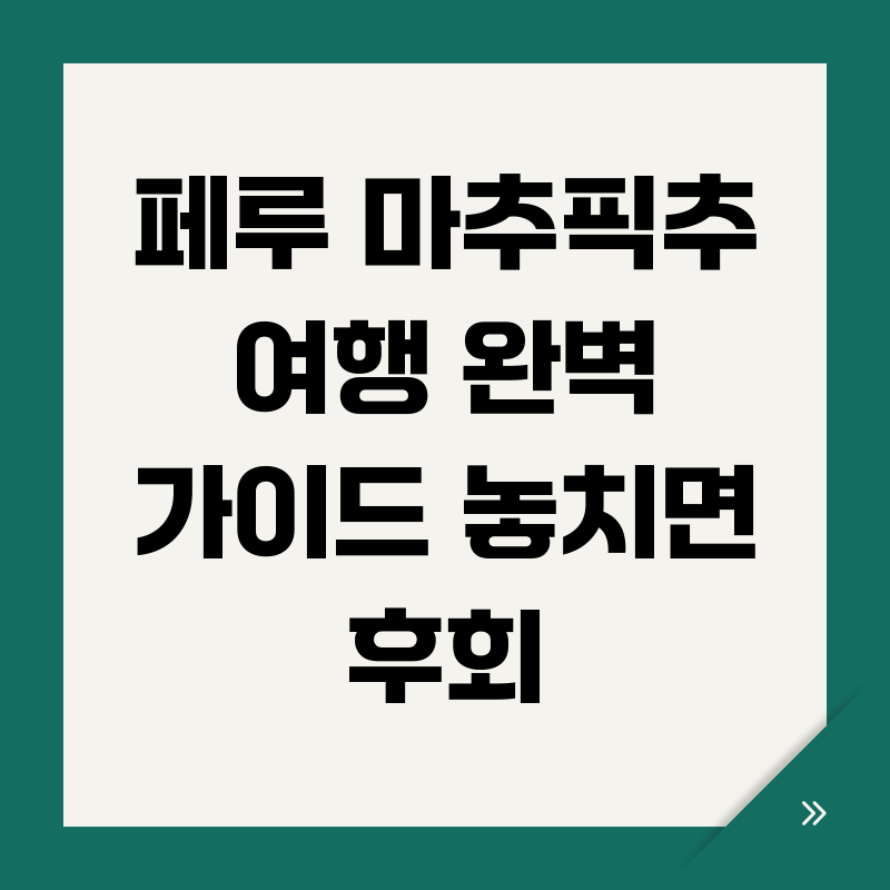 - 준비물: 마추픽추는 날씨 변화가 심하므로, 방수 기능이 있는 겉옷과 편안한 운동화를 준비하는 것이 좋습니다. 또한, 모자, 선글라스, 선크림 등 자외선 차단 용품도 필수입니다.