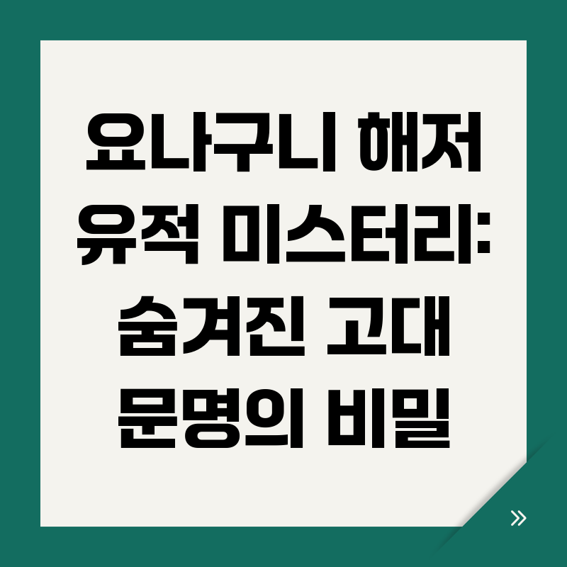 일본 최서단, 오키나와현 요나구니섬 인근 해저에는 불가사의한 구조물이 잠겨 있습니다. '요나구니 해저 유적'이라 불리는 이 거대한 암반 덩어리는 자연적인 지형일까요, 아니면 고대 문명의 흔적일까요? 수십 년간 이어진 논쟁 속에서, 새로운 연구 결과와 탐험은 이 유적에 얽힌 미스터리를 더욱 깊게 만들고 있습니다. 과연 요나구니 해저 유적은 인류 역사를 다시 써야 할 증거일까요? 함께 심층적으로 파헤쳐 보겠습니다.