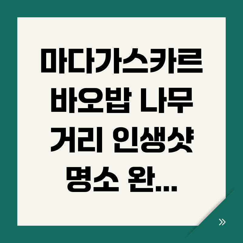 마다가스카르 바오밥 나무 거리는 단순한 사진 명소를 넘어, 자연의 경이로움과 생명의 소중함을 느끼게 하는 특별한 장소입니다. 철저한 준비와 촬영 팁을 통해 멋진 인생샷을 남기고, 바오밥 나무 보존을 위한 노력에도 동참하여 더욱 의미 있는 여행을 만들어 보세요. 마다가스카르의 아름다운 풍경과 문화를 경험하며 잊지 못할 추억을 만들 수 있을 것입니다.